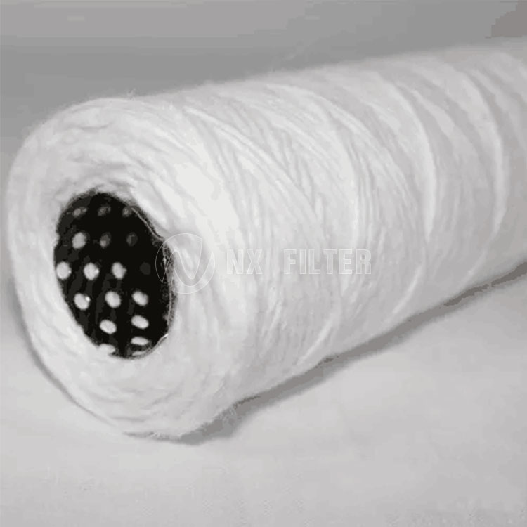 পিপি স্ট্রিং ক্ষত ফিল্টার কার্টরিজ টেক্সটাইল ফাইবার সুতা দিয়ে তৈরি করা হয় ছিদ্রযুক্ত কোরের চারপাশে শক্তভাবে
